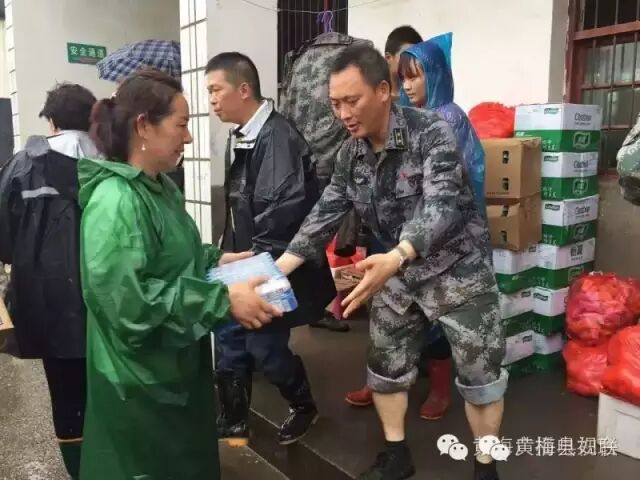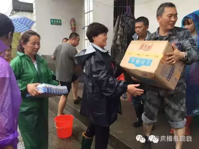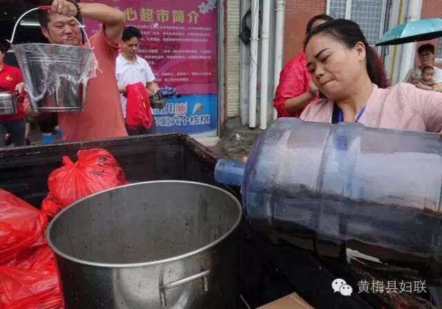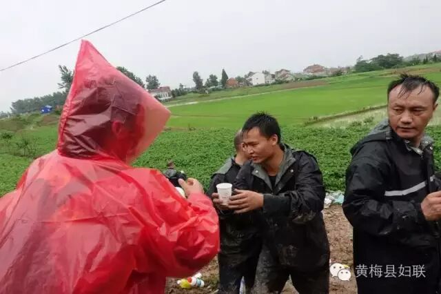 ▲“爱心义工协会”送姜汤到蔡山镇防汛一线