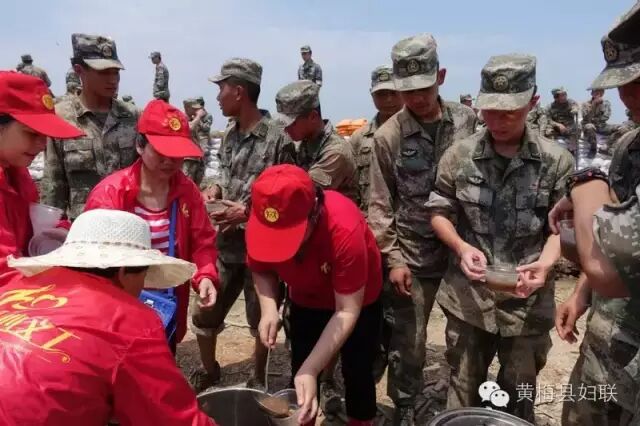 ▲“爱心义协工会”给下新镇防汛一线的官兵送去姜汤