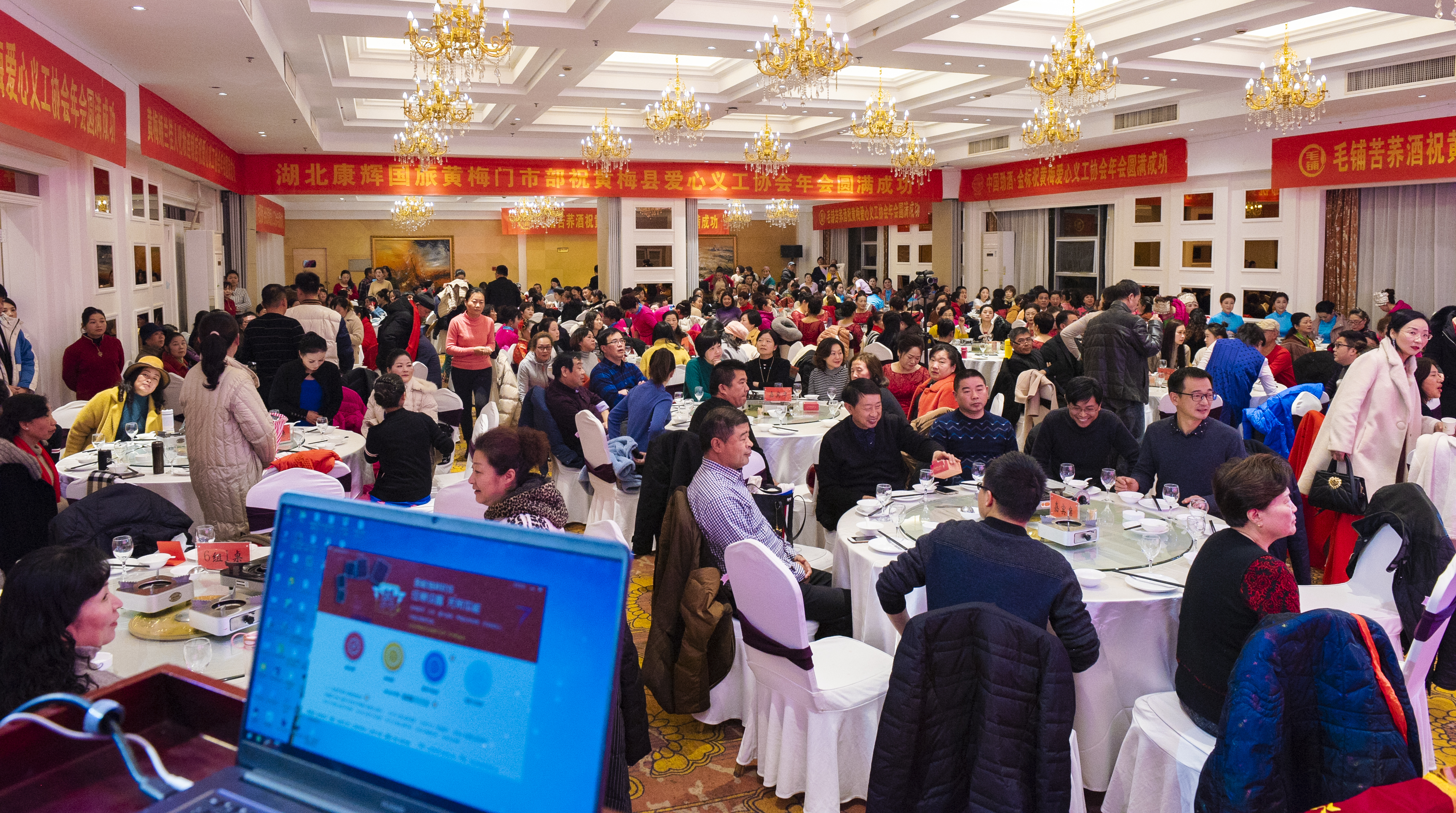 2019年12月22日晚6,00,黄梅县爱心义工协会2019年会暨二届三次会员大会在嘹亮的《国歌》和爱心协会会歌《爱的力量》声中,于黄梅县天下禅大酒店四楼大厅隆重举行。副县级领导,县慈善会李仲良会长,县委组织部王万舟副部长,胡亮中科长,县总工会常务副主席汪锦峰同志,副主席李红梅,王娅,县妇联黄志慧主席,县民政局朱勋平局长,宣传部周文红主任,县残联项小平副理事长等有关领导,爱心捐赠单位,部分爱心捐赠人士,爱心协会全体会员共三百二十多人参加。