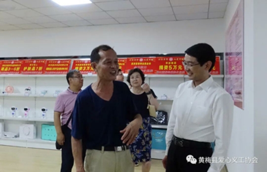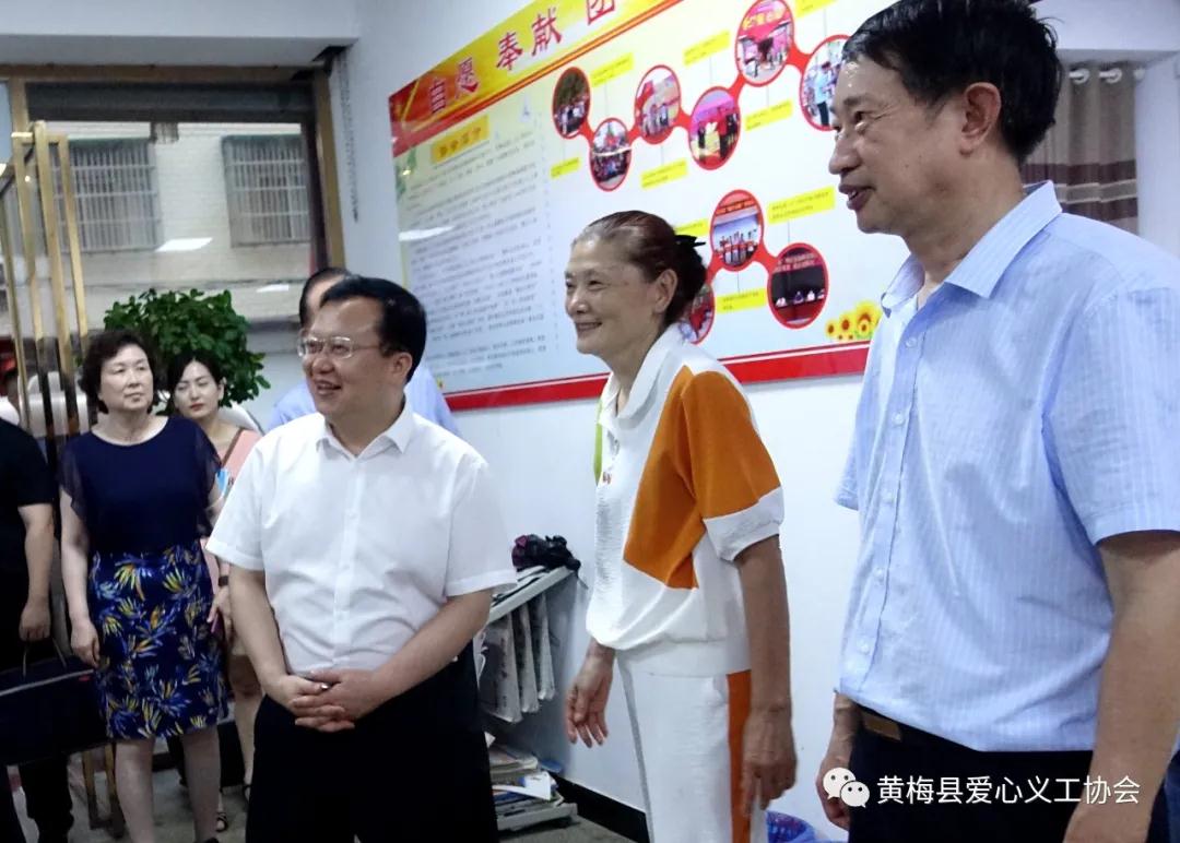 河南省慈善总会会长、河南省政协原副主席、党组副书记邓永俭,河南省慈善总会副会长、河南省国土资源厅原厅长盛国民一行10人、湖北省慈善总会驻会副会长范红华(女)、秘书长康锋一行6人、黄冈市慈善总会会长、市政协原党组副书记、副主席李儒志、黄冈市慈善总会副会长、秘书长邹德元一行4人于下午17:00抵达黄梅县爱心义工协会进行参观考察,黄梅县县委书记、县长刘欲晓、黄梅县县委常委、县委副书记高维鹏、县副县级领导、慈善会会长李仲良和县慈善会副会长,县爱心协会会长虞红霞陪同参观考察。