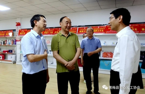 2021年7月8日,河南省慈善总会、湖北省慈善总会、黄冈市慈善总会一行20多位领导来黄梅考察交流慈善工作,实地考察黄梅县“幸福家园”村社互助项目,于傍晚时分莅临黄梅县爱心义工协会考察“积分兑换商店”和“爱心公益食堂”项目情况。