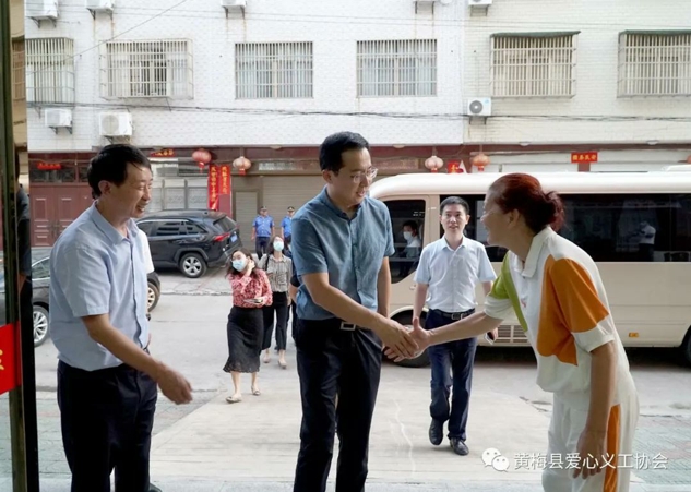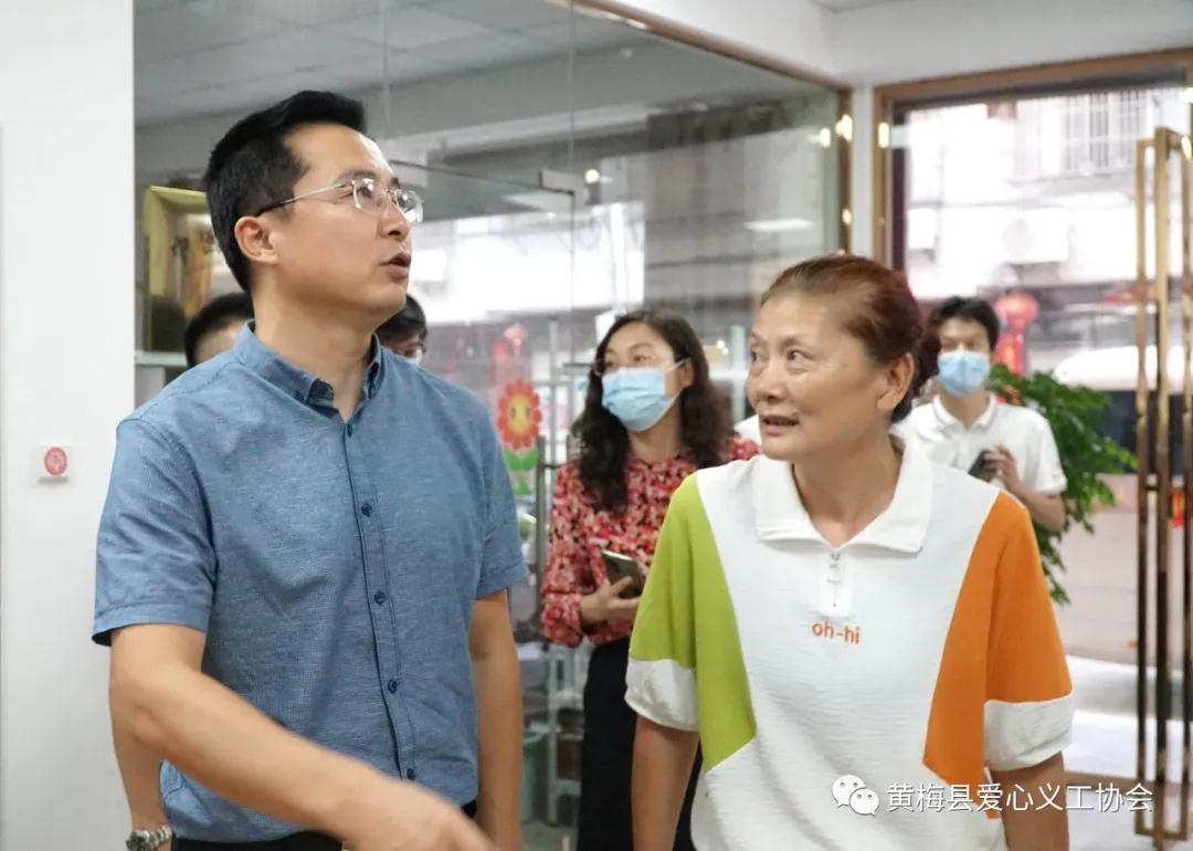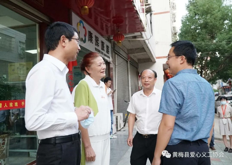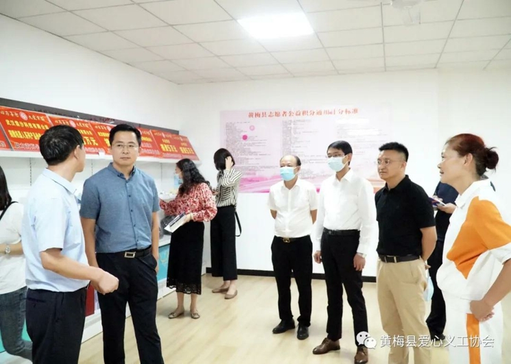2021年9月22日下午,民政部慈善社工司副司长陈军一行到黄梅县调研慈善工作。湖北省民政厅副厅长孟志强,慈善社工处副处长谢芳,黄冈市民政局副局长陈李虹,黄梅县委书记刘欲晓,黄梅县副县长费军广,副县级领导、黄梅县慈善会会长李仲良,黄梅县民政局局长朱勋平、黄梅县爱心义工协会会长虞红霞、党支部书记赵峰、副会长兼秘书长蔡春江陪同调研。