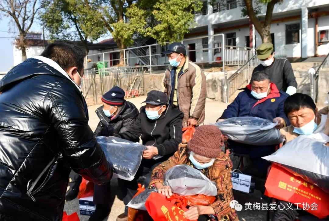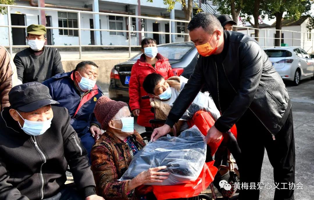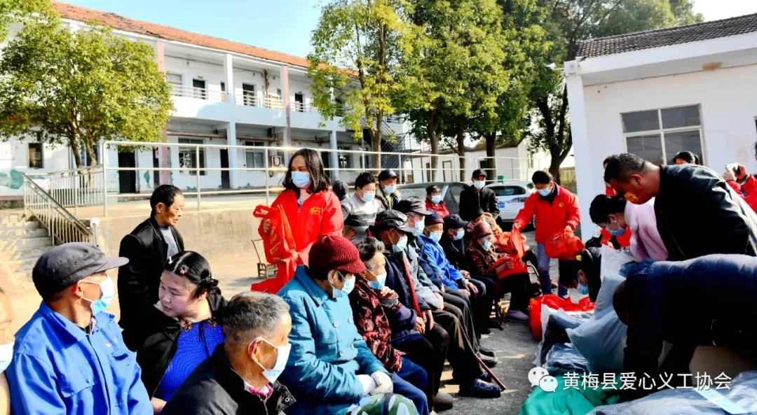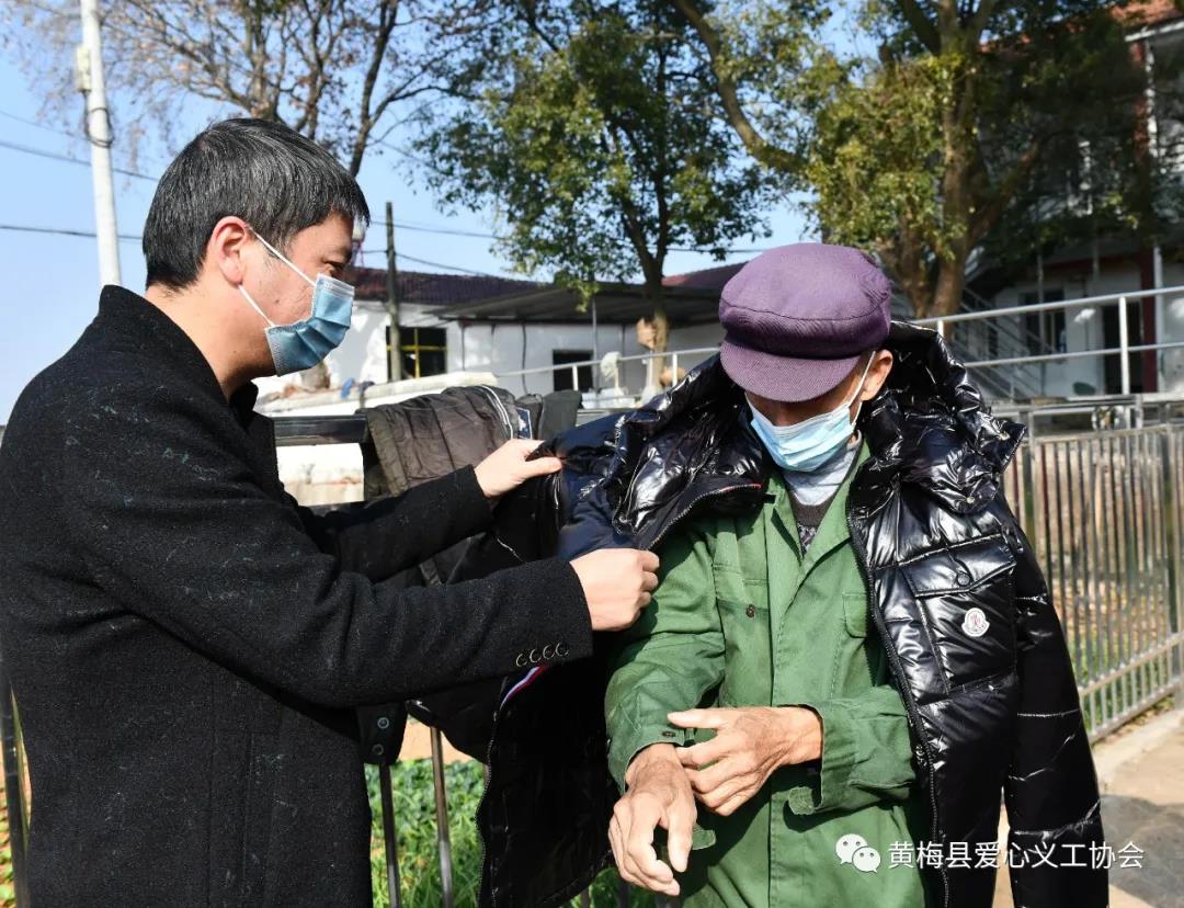 2021年12月14日,黄梅县爱心义工协会5名义工驱车前往位于下新镇钱林村的下新福利院,会合武汉天麓建设工程有限公司陈燕兵董事长一行6人,一同慰问居住在福利院的27名老人。