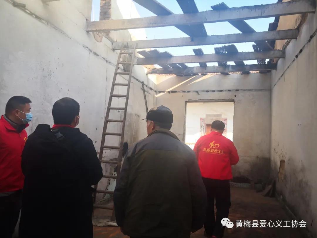 2021年12月22日,黄梅县爱心义工协会获悉家住黄梅镇城乡社区三组古塔东路11巷25号的居民张国华家突遇大火,房屋受损,经协会研究决定,于23日进行看望慰问。