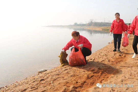 随着虞红霞会长一声“开始”,50多名义工、志愿者奔赴湖畔每个角落,清理起湖边散落塑料、包装等垃圾。
