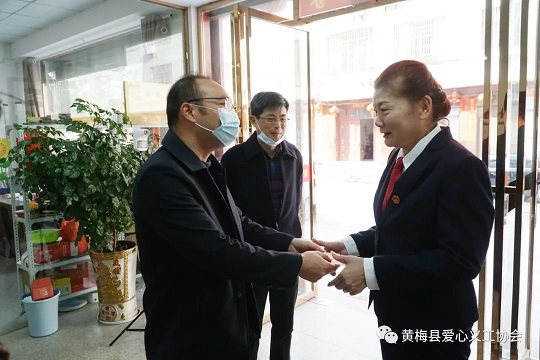 3月8日早8:00,县委常委,县总工会主席罗盘军同志、县总工会常务副主席汪锦峰同志,县妇联主席杨艳芳同志到黄梅县爱心义工协会,慰问荣获全国“三入红旗手”称号的黄梅县爱心义工协会虞红霞会长。