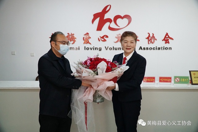 罗盘军同志向虞红霞会长送上一个饱含县领导关爱的慰问红包和一束玫瑰花束,对虞红霞会长表示热烈的祝贺,并和虞红霞会长亲切交谈。交谈期间,县委书记刘欲晓同志特地给虞红霞会长打来电话,祝贺她获得这一国家级的荣誉,并祝她节日快乐。
