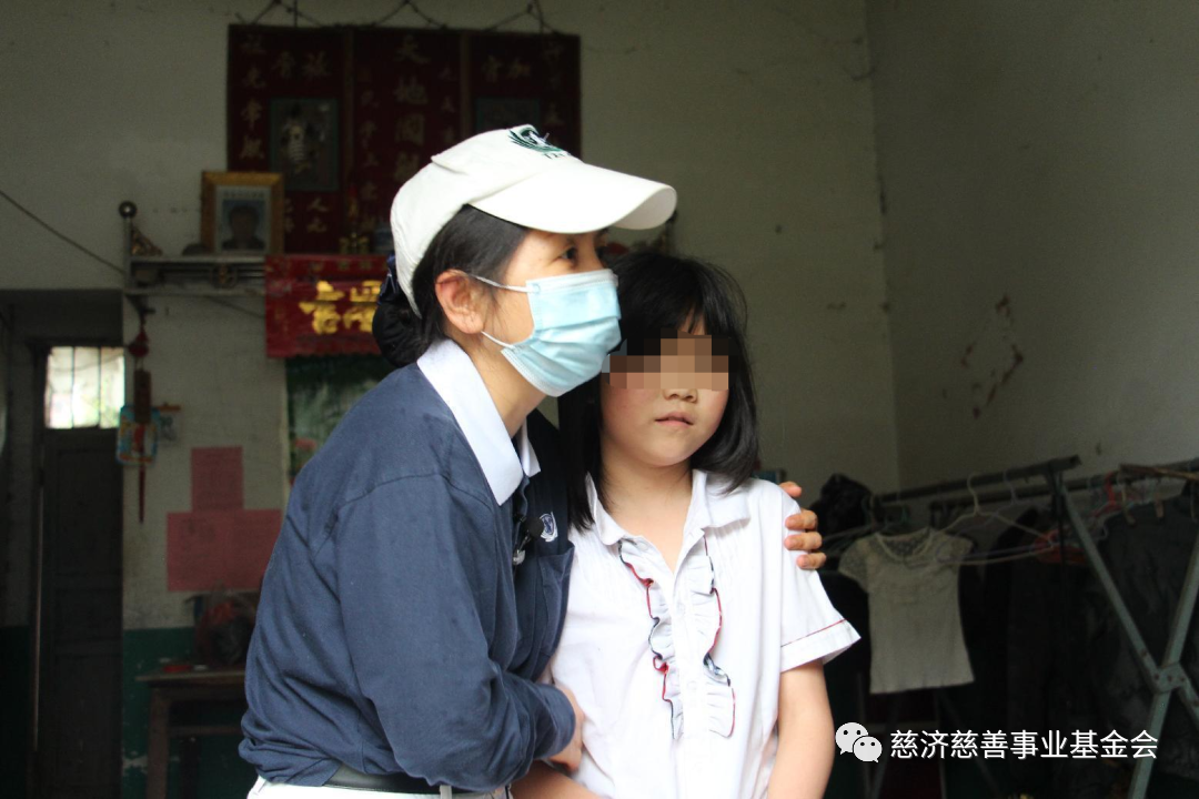 志工樊丽华笑着和母亲聊了一会儿,将红红搂在怀里,询问红红家里的情况。孩子羞涩地说,父亲有精神疾病,长年吃药,现在做快递员。爷爷买菜做饭,接送她上下学。红红小声地说,爷爷肺不好,也在吃药。听到这里,樊丽华将孩子搂得更紧了。