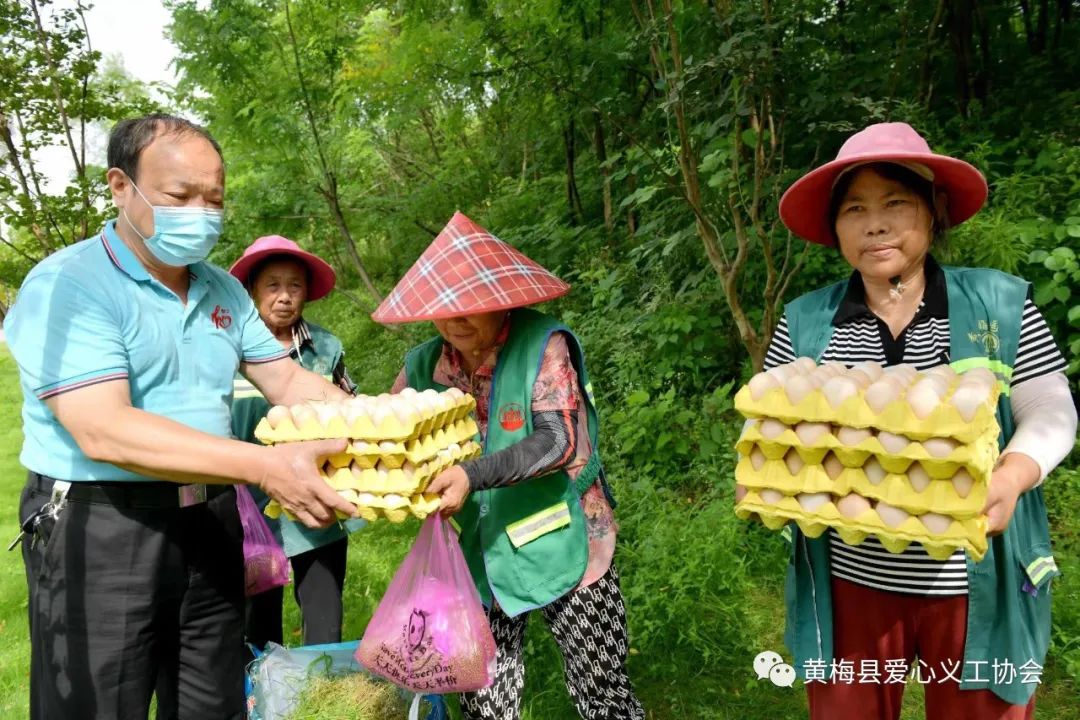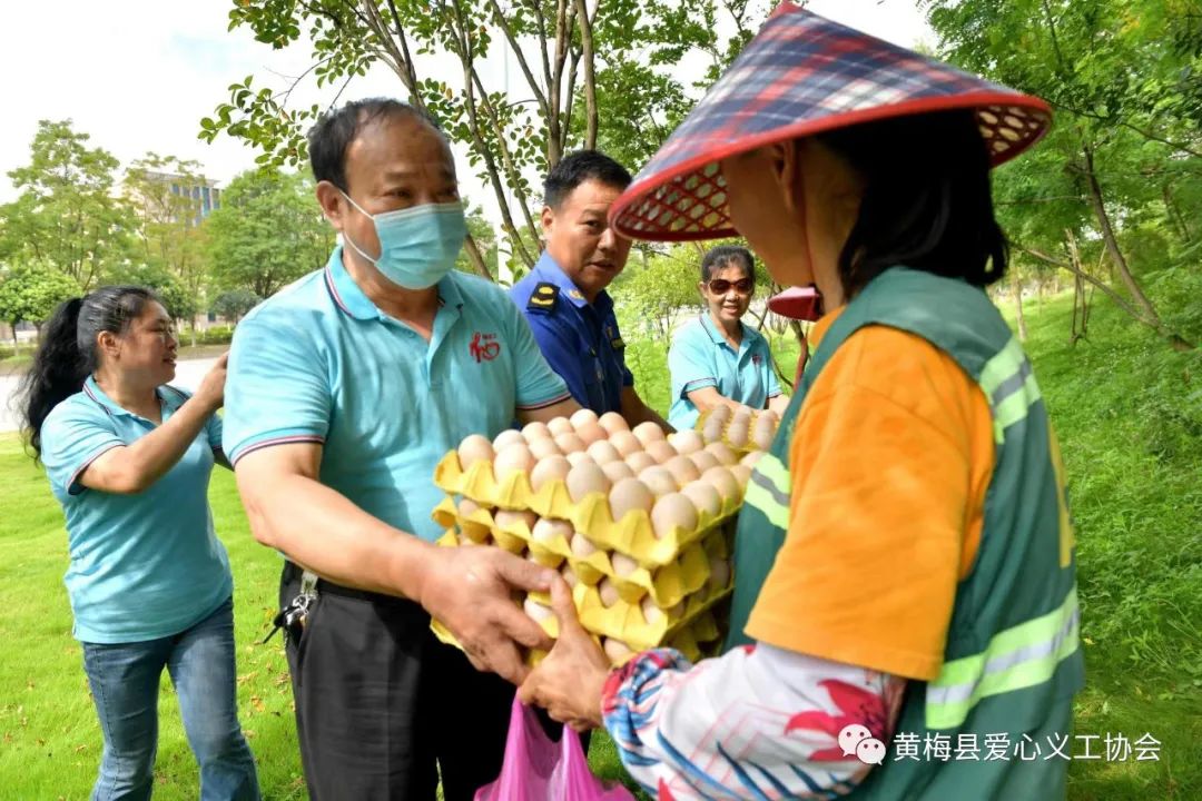 慰问小组将四板鸡蛋和5斤绿豆一个个地送到他们手中,工人们扬起憨厚的笑脸,连声感谢爱心义工协会对他们的关怀。