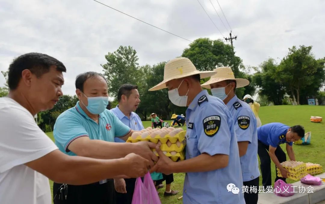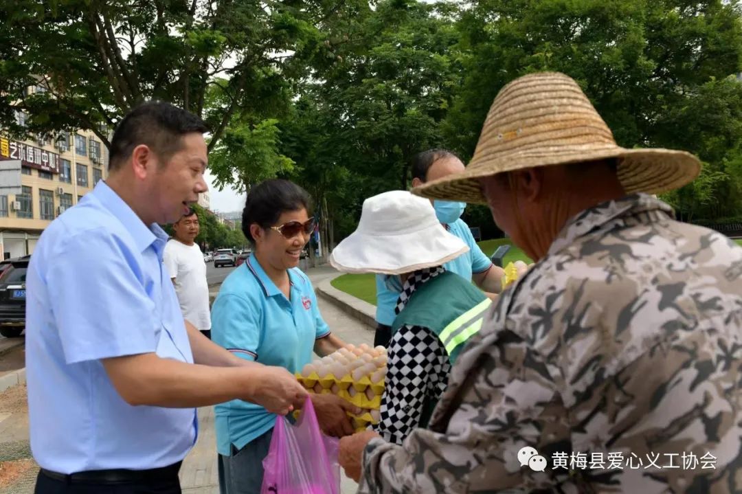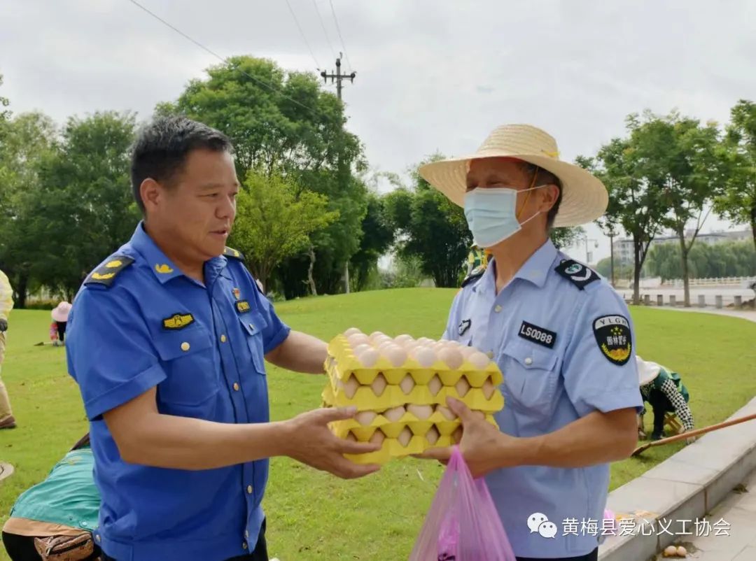 2022年7月4日,在黄梅县爱心义工协会党支部书记赵峰、常务副会长鲁再洪带领下,两辆满载着慰问物资的车辆驶向正在高温下工作的园林工人。