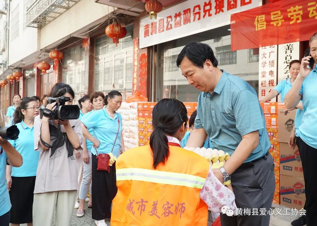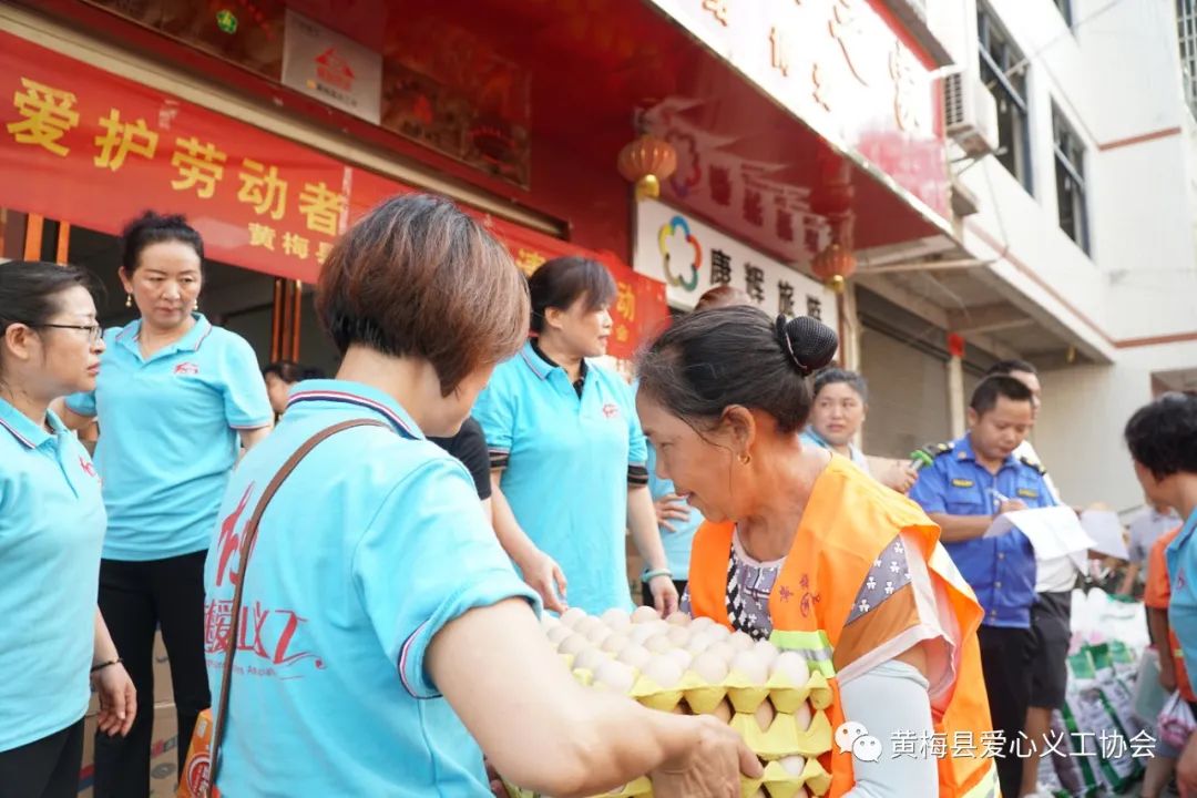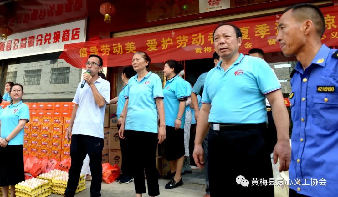 黄梅县爱心义工协会蔡春江副会长说:“倡导劳动美,关爱劳动者”这个活动爱心义工协会已经坚持了好几年,并会一直坚持下去,关注关爱辛勤的劳动者们。