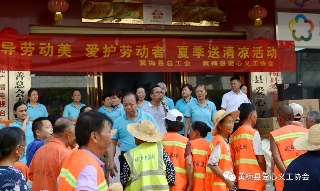 2022年7月14日,黄梅县总工会和黄梅县爱心义工协会共同开展的“倡导劳动美,关爱劳动者”夏季送清凉慰问环卫工人活动拉开帷幕。
