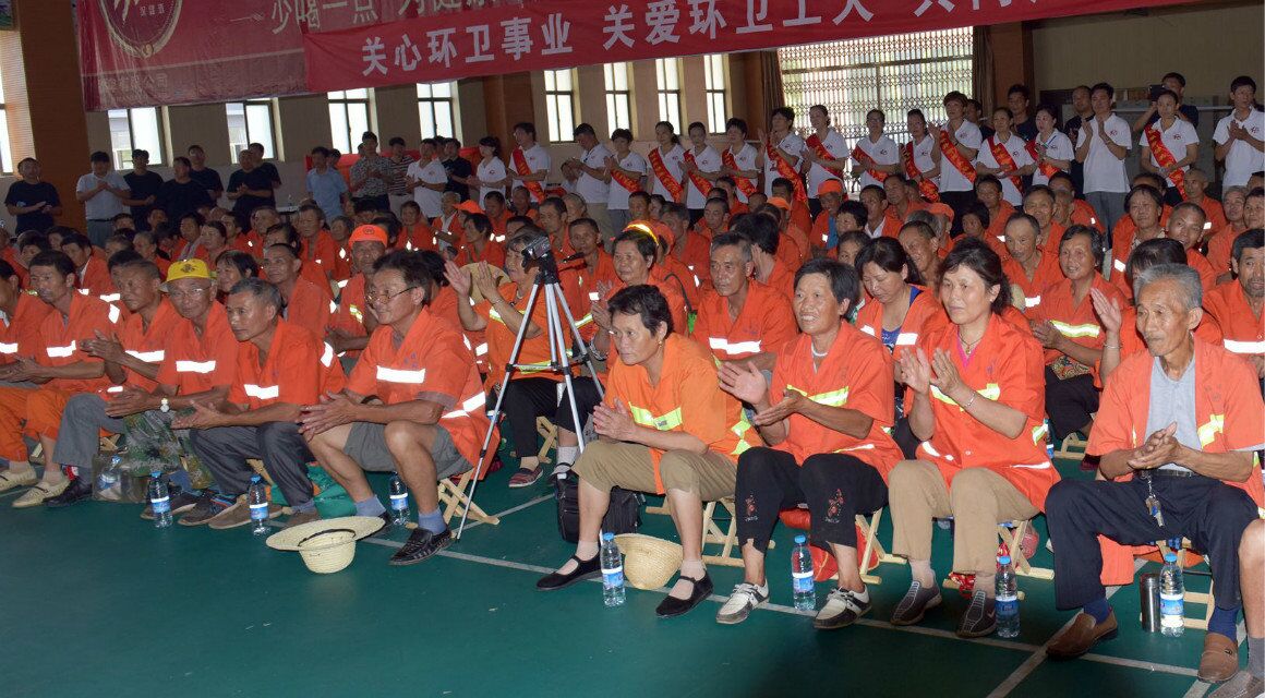 活动由县总工会常务副主席汪锦峰同志主持,县委党委,县委宣传部长漆浩同志致辞,县爱心义工协会占汶同志宣读倡议书,县环卫处工人代表发言。县总工会给每位环卫工人赠送一台鸿运电风扇,一顶草帽,一条毛巾,二双袜子等等物资,县爱心义工协会赠送每位环卫工人一把马扎坐凳,一箱月月红桔子罐头。组织好莱坞,小雨点等六家理发单位义务为环卫工人理发,并为环卫工人送去一台丰富多彩的文艺节目。县人民医院免费为一线环卫工人体检。
