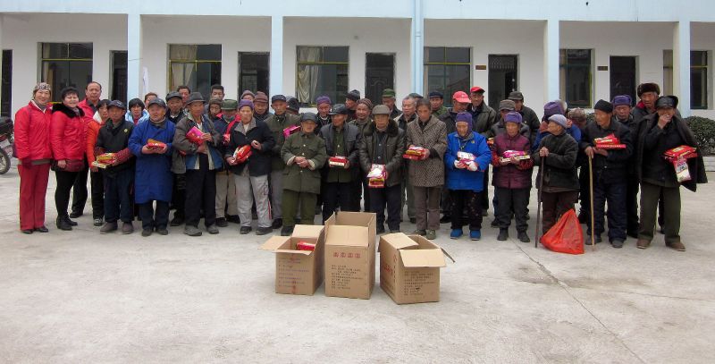 每年春节前爱心义工协会都要到福利院和贫困家庭送些物质,今年是和天下祖庭五祖寺一起慰问,六个福利院265位老人,每位老人三包糕点,l五祖寺赠送油和豆粑,20家贫困家庭,每家500元一袋米,一并油,一件棉祆,(依采诺捐赠),陈敏烟酒典藏每个家庭赠送两提酒,老凤祥和老庙捐5000元。在此特感谢这些爱心企业。
