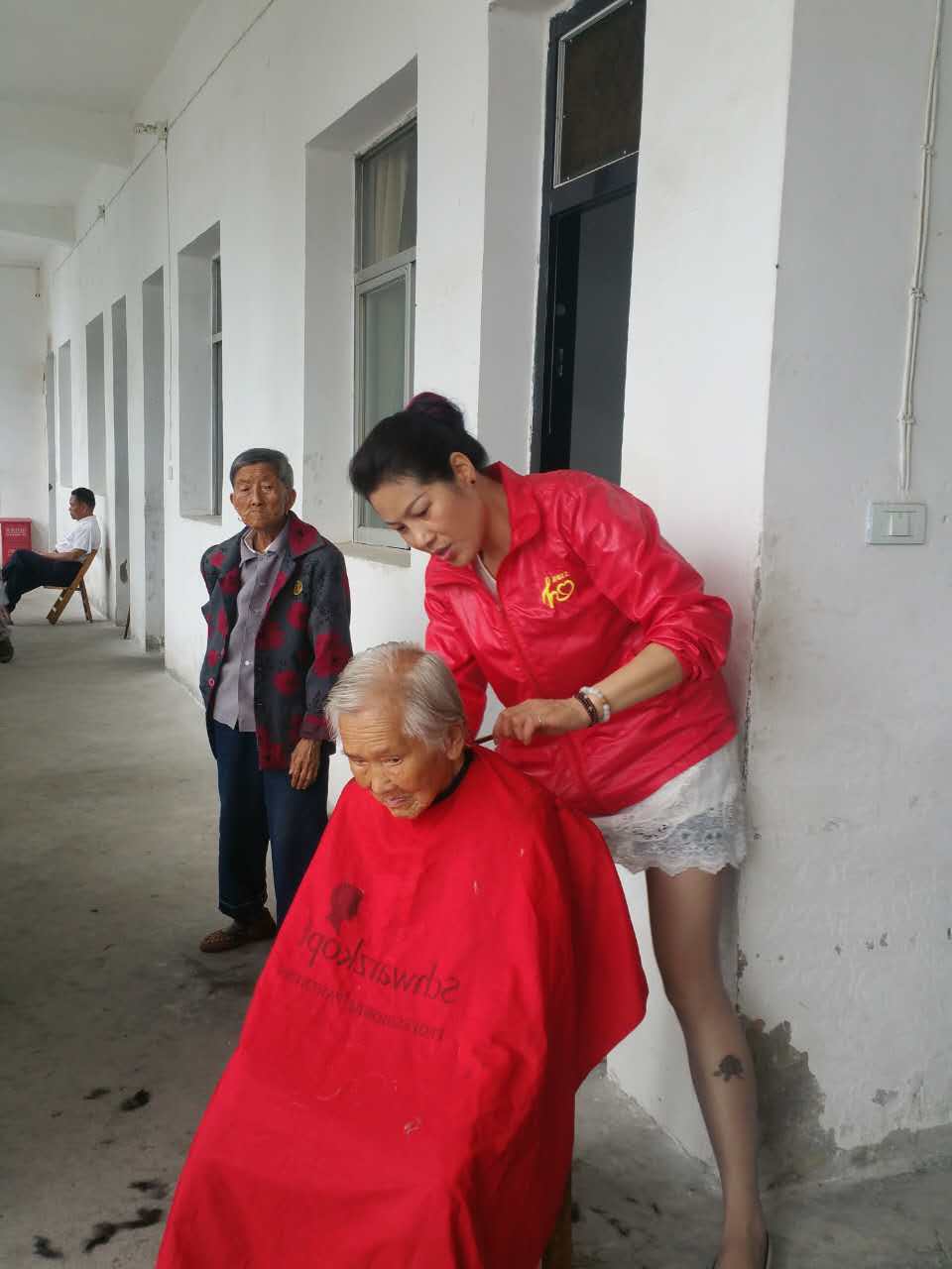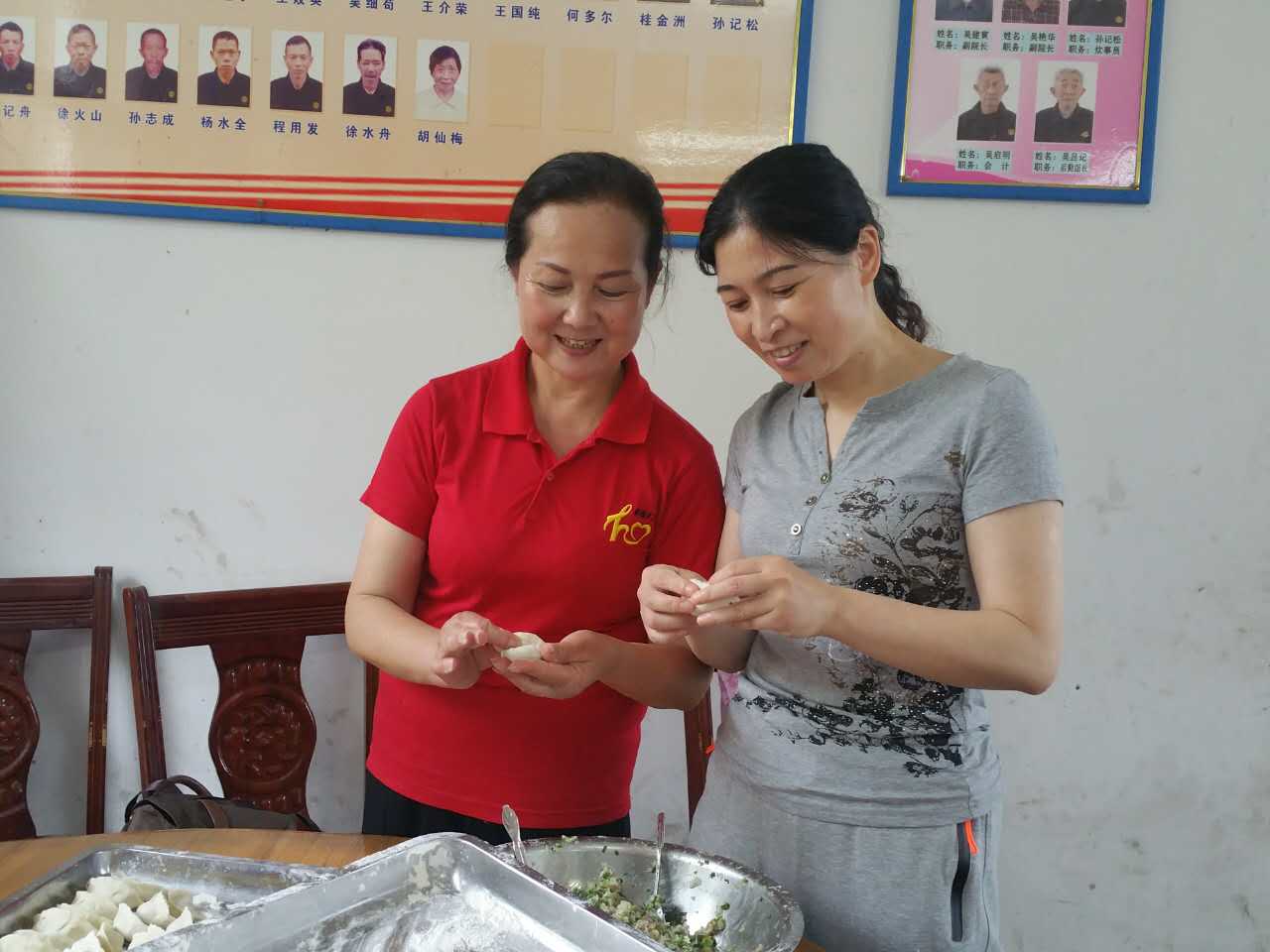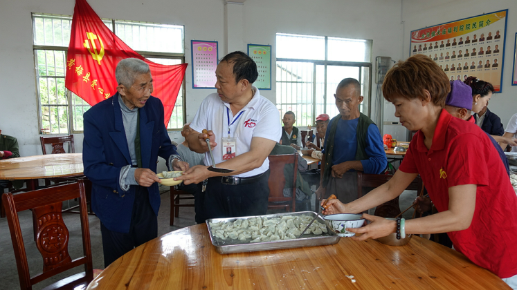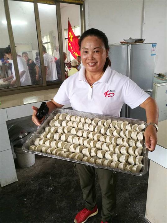 在福利院,理发的会员,在走廊上面精心地为老人们理发,刮胡子。做卫生的同志,逐一逐房间检查,发现需要清理的卫生清理干净。包饺子的队伍,洗菜,切菜,调馅,和面,赶皮,包饺子,各尽所能,各负其责,十一点四十,当煮好的饺子端上餐桌,老人们吃上热气腾腾,香柔可口的饺子时,脸上露出开心的笑容,“共产党真好”,“你们都是好人”,七十八岁的刘木狗老人边吃边说边伸出大姆指连连称赞。