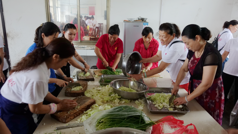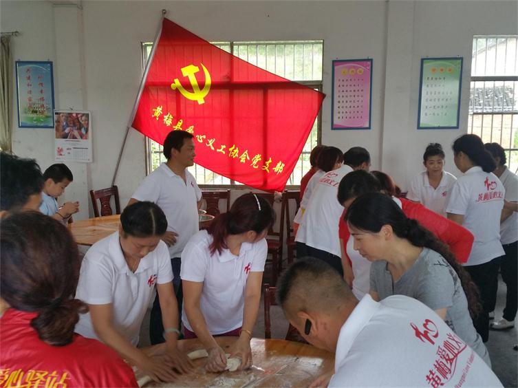 2017年6月11日上午,黄梅县爱心义工协会党支部组织爱心党员和爱心会员共计43人(17名党员会员,26名非党员会员)去大庙福利院为该院46位老人包饺子,理发等慰问活动.