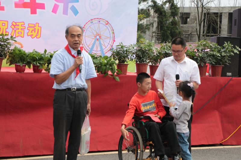 父亲推我到帐篷下,等待节目开始。帐篷上面挂着五颜六色的气球,台上的音箱里面放出动听的音乐,激动人心。很多残疾孩子和陪伴的大人在台下坐着,相互沟通、交流,为特校呈现出了一幅欢快的场面。