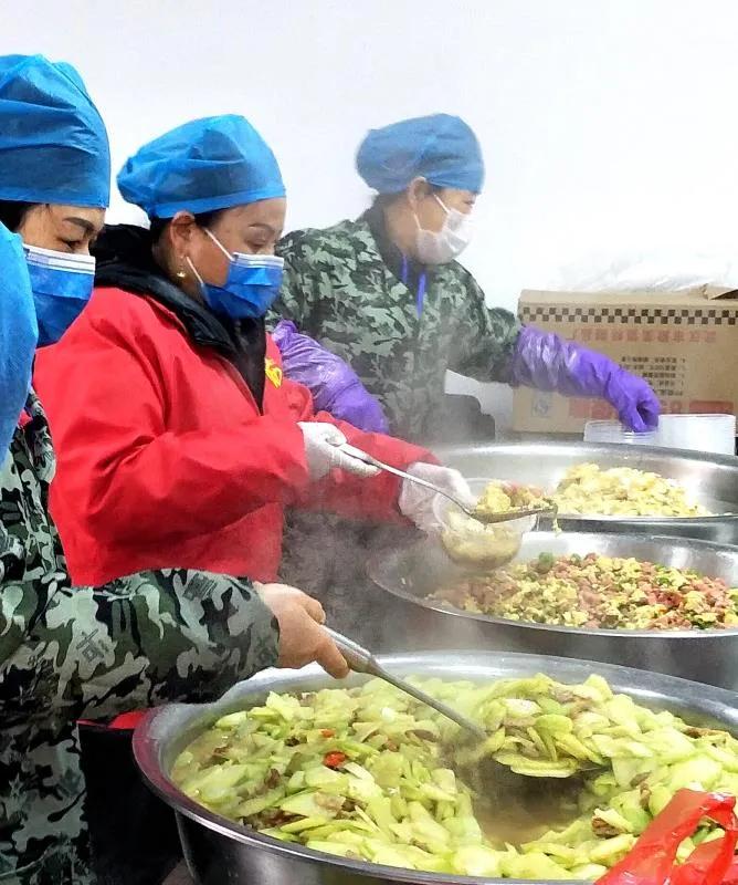 1月29日起,每天上午9时,爱心工作人员准时到场,准备人民医院等四个病区中晚餐,份数从第一天140多份起,到160多份,到后来的每天350多份。大家也从第一天的手忙脚乱到后来的井然有序,每天准备的菜量多达几十斤、百多斤,鲁再洪带领26名爱心义工,洗净每一棵菜,备菜、炒菜、煮饭,宁愿自己多吃点苦,多受点累,中途坚决不换人,保证绝对安全。截止3月14日,已为人民医院四个隔离病区医患人员做了爱心盒饭13800余份,每天按照两荤一素的标准搭配,份量充足,营养均衡。