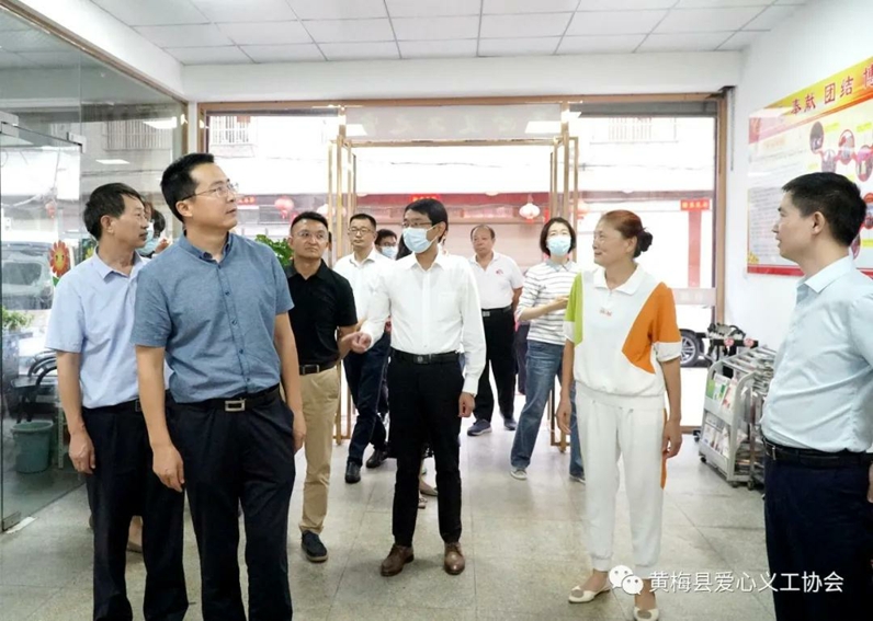 2021年9月22日下午,民政部慈善社工司副司长陈军一行到黄梅县调研慈善工作。湖北省民政厅副厅长孟志强,慈善社工处副处长谢芳,黄冈市民政局副局长陈李虹,黄梅县委书记刘欲晓,黄梅县副县长费军广,副县级领导、黄梅县慈善会会长李仲良,黄梅县民政局局长朱勋平、黄梅县爱心义工协会会长虞红霞、党支部书记赵峰、副会长兼秘书长蔡春江陪同调研。