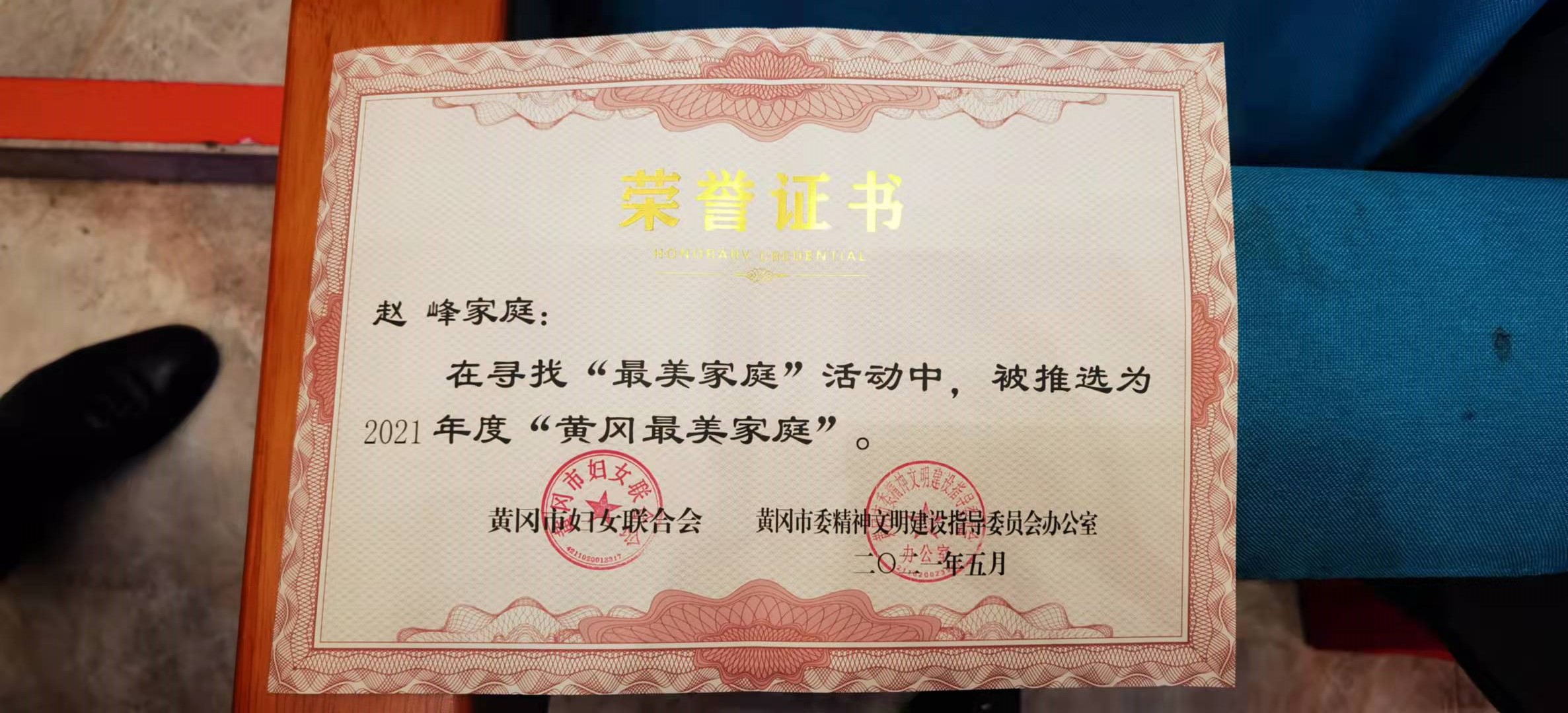 赵峰荣获“黄冈最美家庭”荣誉称号