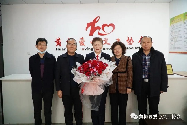 3月8日早8:00,县委常委,县总工会主席罗盘军同志、县总工会常务副主席汪锦峰同志,县妇联主席杨艳芳同志到黄梅县爱心义工协会,慰问荣获全国“三入红旗手”称号的黄梅县爱心义工协会虞红霞会长。