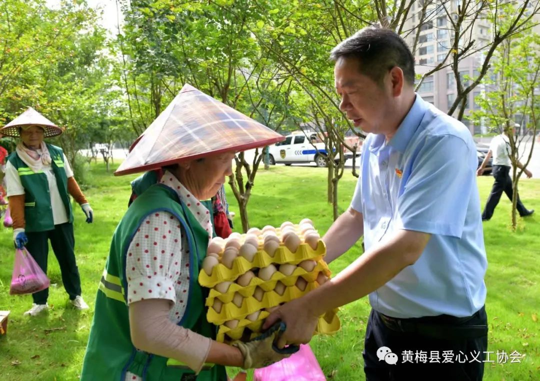 2022年7月4日,在黄梅县爱心义工协会党支部书记赵峰、常务副会长鲁再洪带领下,两辆满载着慰问物资的车辆驶向正在高温下工作的园林工人。