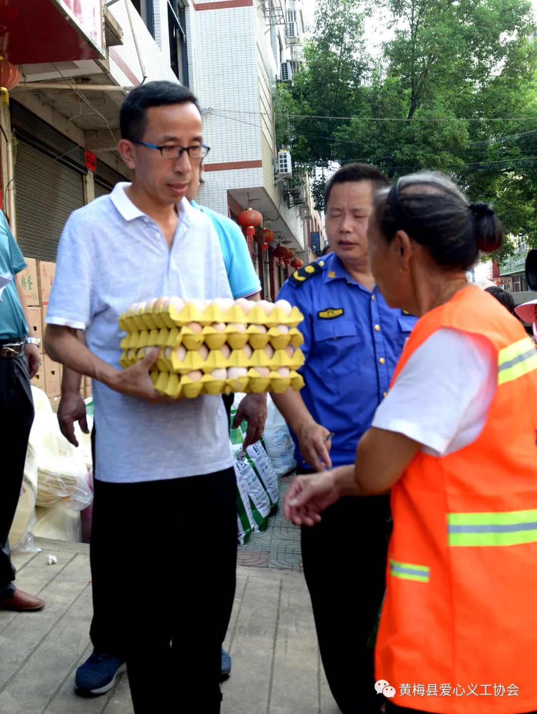 黄梅县爱心义工协会蔡春江副会长说:“倡导劳动美,关爱劳动者”这个活动爱心义工协会已经坚持了好几年,并会一直坚持下去,关注关爱辛勤的劳动者们。