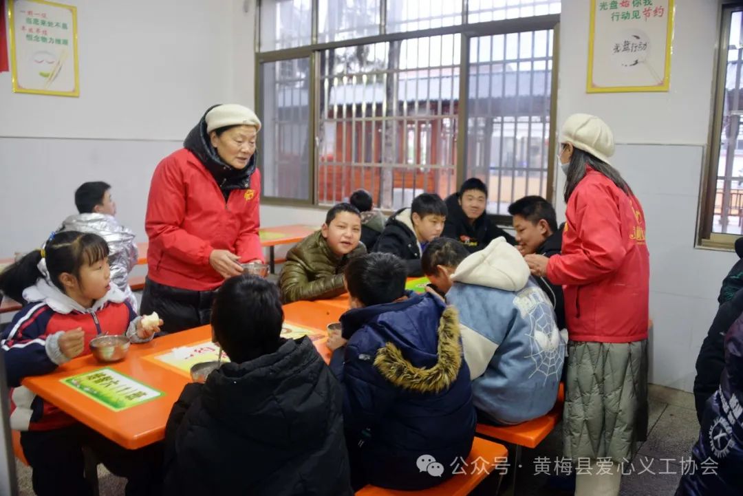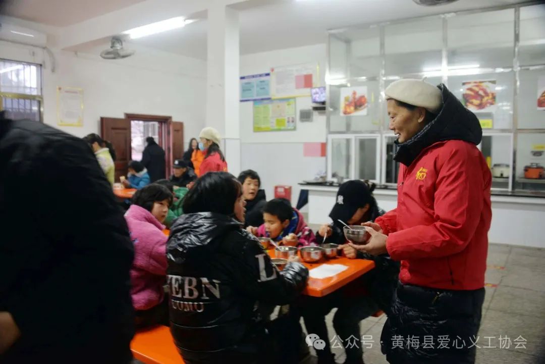 在爱心义工协会开始喝腊八粥同时,虞红霞会长又调动车辆,分派义工将熬好的粥分别送到黄梅县特殊学校和正街鑫城老凤祥银楼,为特殊学校的孩子们和环卫工人及市民们送上香甜的腊八粥,为大家送去温暖和祝福。