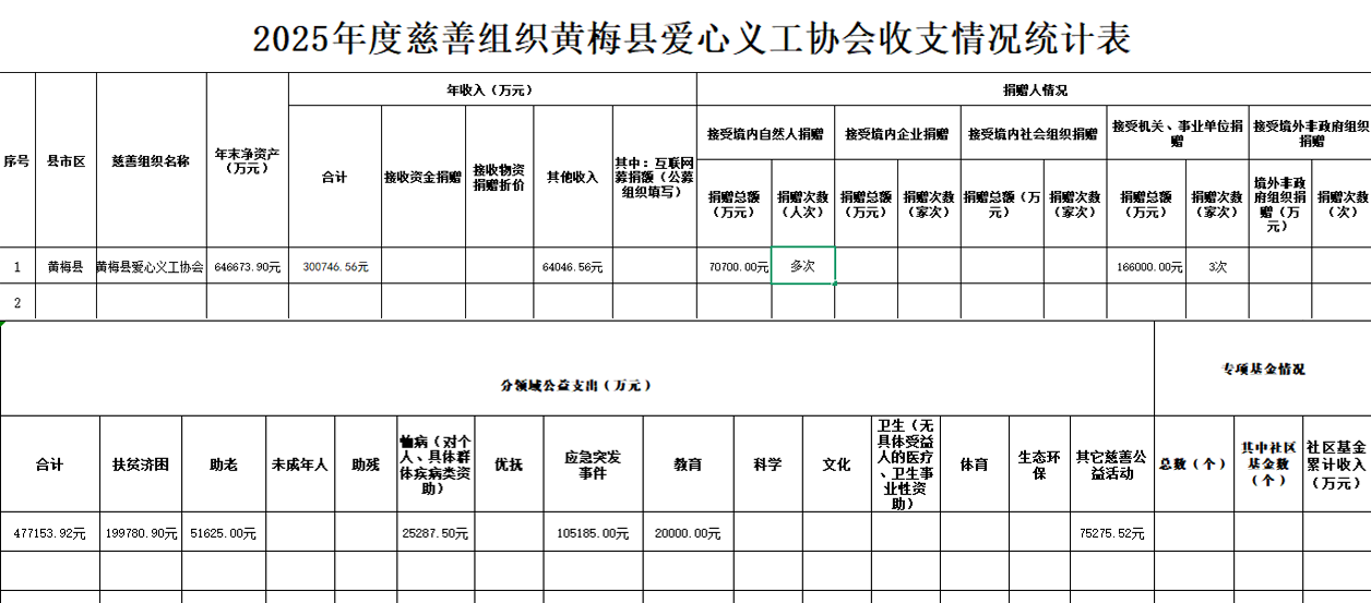 2025年度慈善组织黄梅县爱心义工协会收支情况统计表